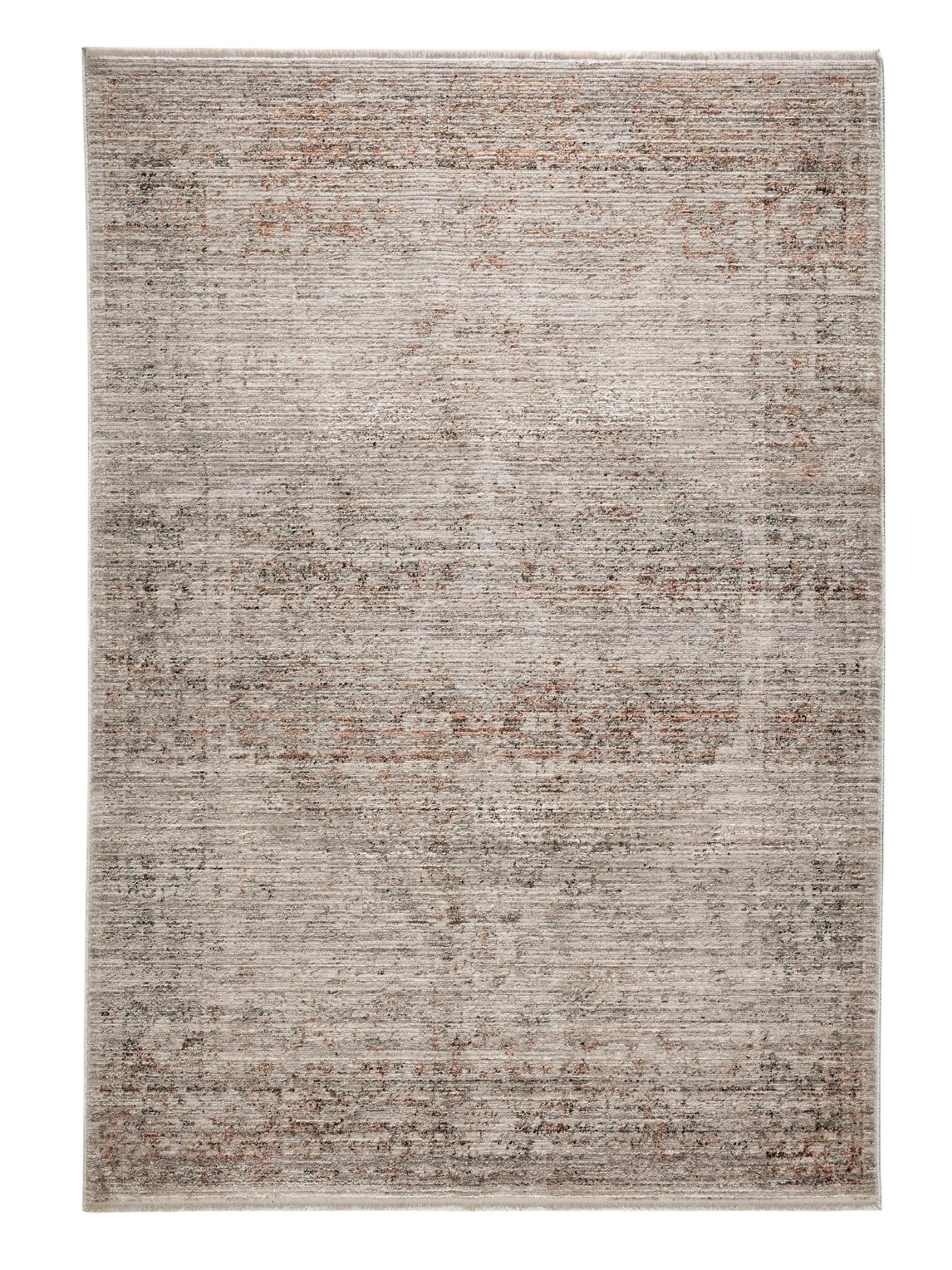 Sous la lumière tamisée d’un salon, ce tapis évoque immédiatement une mémoire patinée, une histoire couchée dans la trame. Le regard glisse sur des champs de couleur adoucis où le gris clair s’accorde au beige avec une finesse qui rappelle les textiles retrouvés après des décennies d’usage. Le sens du détail se lit dans les variations subtiles, les zones plus usées qui laissent apparaître un charme singulier et une profondeur visuelle digne des pièces authentiquement vintage.
