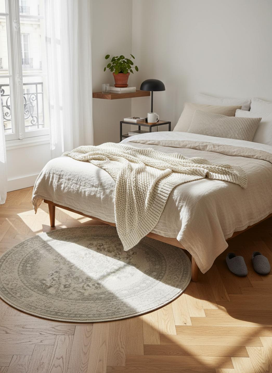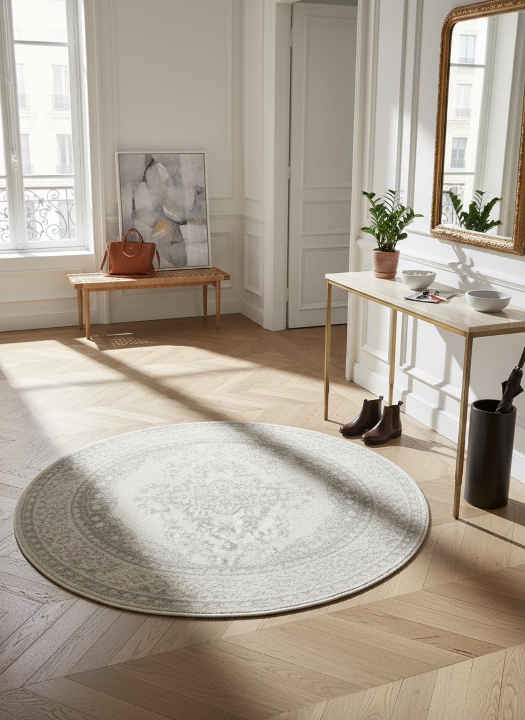 Centré dans une pièce, le format évoque une intention précise : le format rond installe un cocon visuel et une douceur enveloppante, idéal pour créer un îlot réservé au confort. La taille pensée et maîtrisée, 120 cm de diamètre, permet une mise en scène raffinée autour d'un fauteuil, d'une table basse ou d'un tapis de lecture, où l'équilibre entre mobilier et décoration devient une composition harmonieuse.