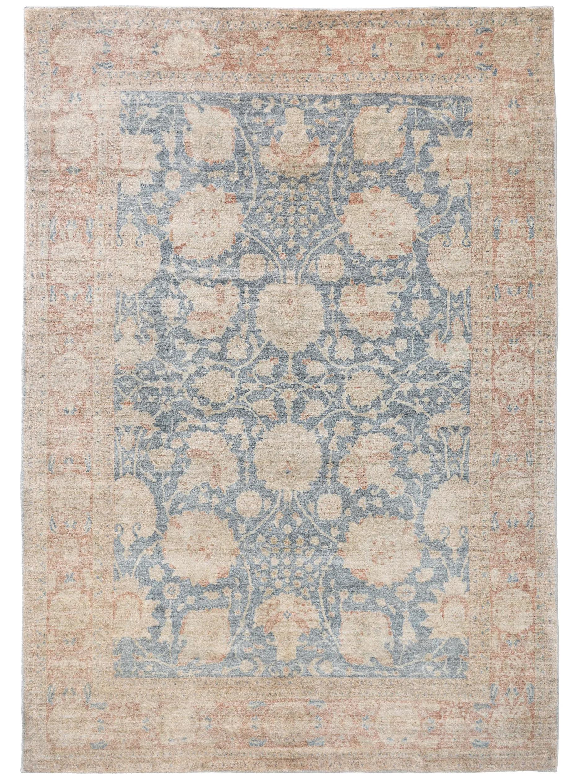 Sublime sous le pas, ce tapis raconte une histoire où le temps a laissé ses traces avec élégance : les effets patinés éveillent une nostalgie chaleureuse et le dessin évoque une lointaine inspiration oriental qui se mêle à un grain domestique. On perçoit immédiatement la patine des couleurs, un équilibre entre usure choisie et richesse décorative qui confère au sol un caractère unique et habité.