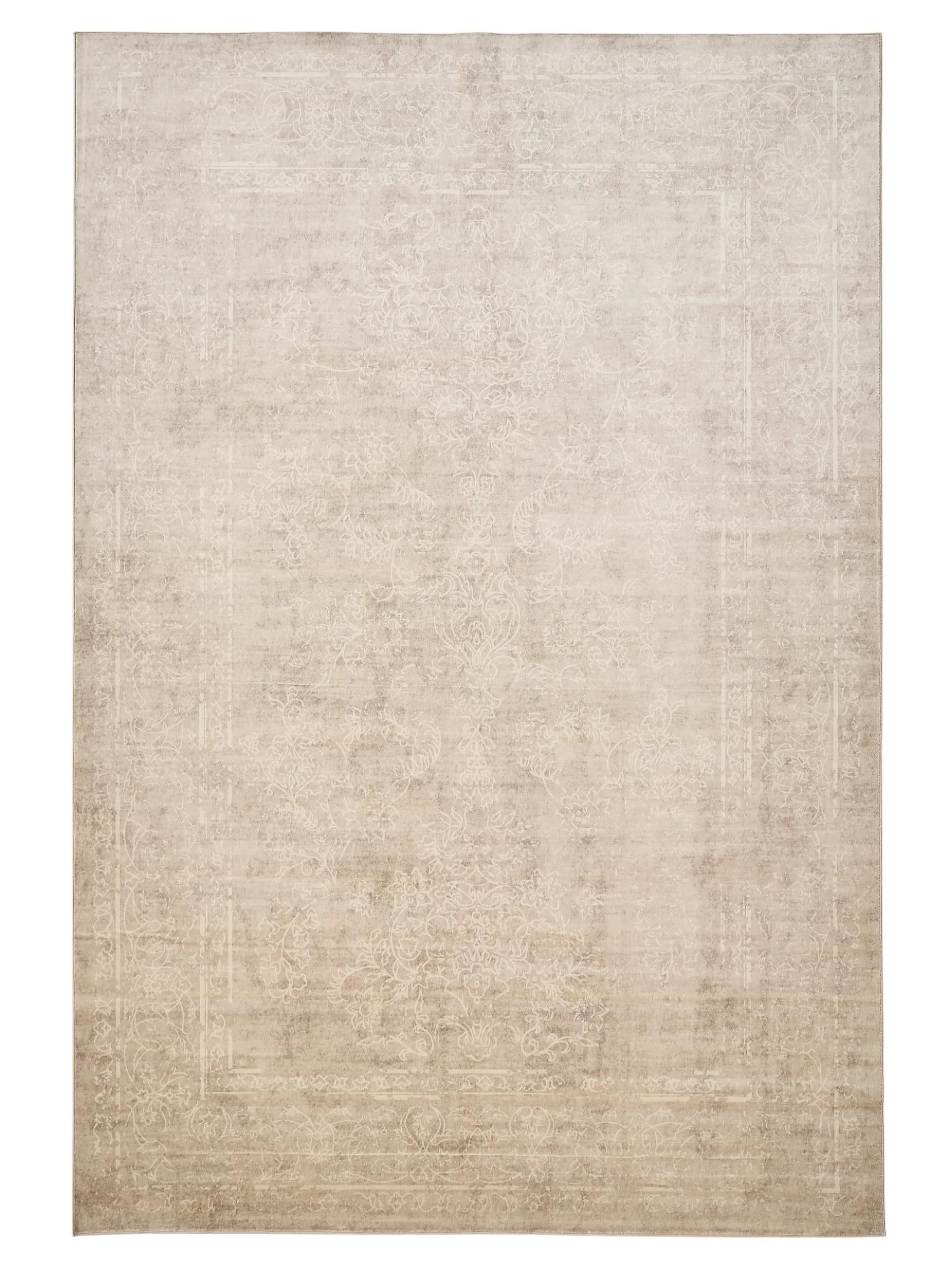 Imprégné d’une douceur ancienne, ce tapis raconte une histoire où le temps a délicatement estompé les contours sans effacer la beauté du dessin. Les matières semblent avoir absorbé des décennies de pas et de lumière, offrant un relief discret qui capte le regard. Les nuances de crème et de beige se répondent comme des pages usées d’un carnet de voyage, créant une profondeur visuelle patinée qui évoque le charme du vécu. Le rendu est à la fois chaleureux et sophistiqué, un équilibre entre usure maîtrisée et richesse décorative.