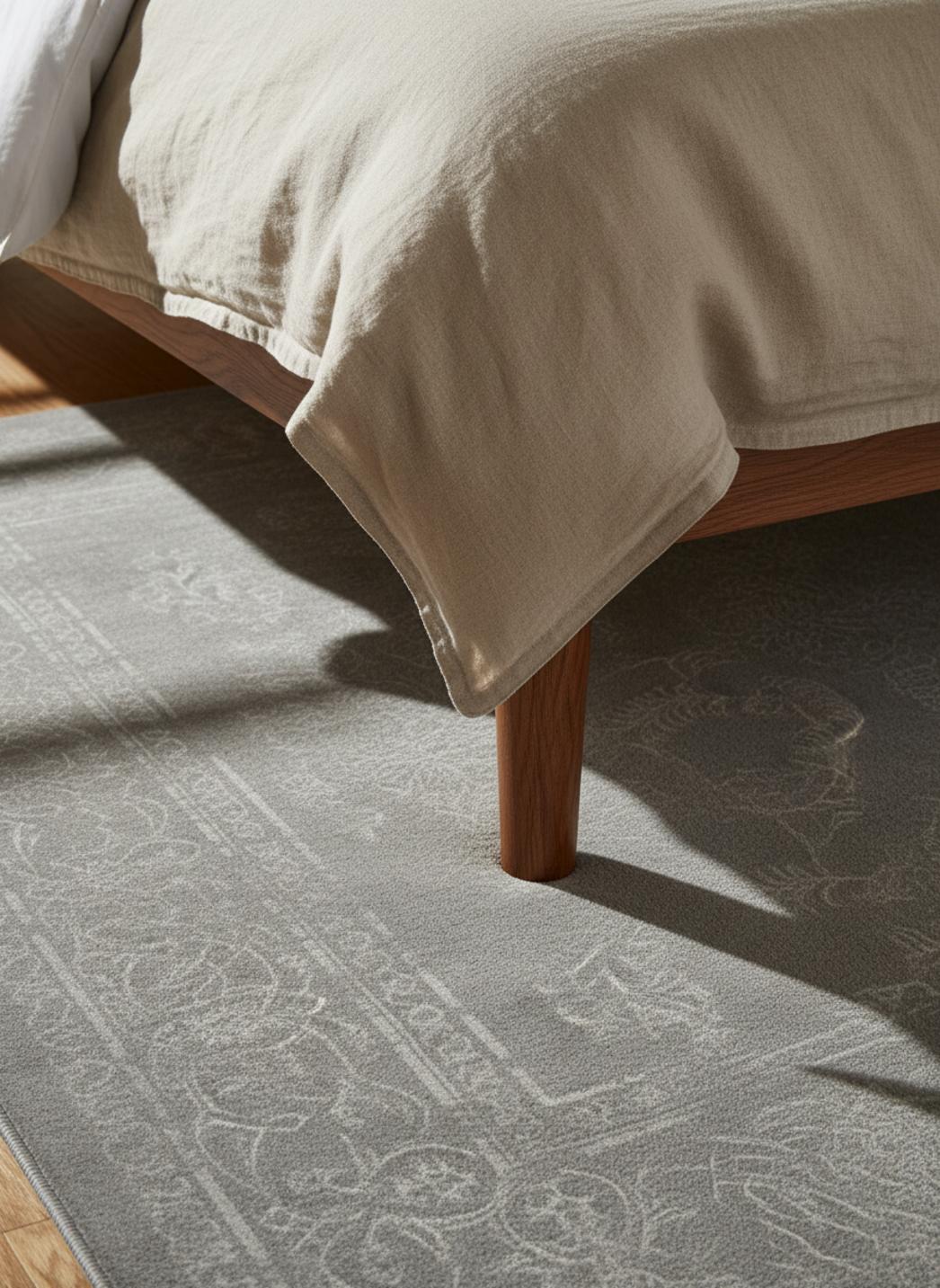 La matière, finement travaillée, propose un relief discret et un toucher accueillant qui répond à l’envie de confort sous les pieds. Le tissage procure une sensation de chaleur et de présence, modulant l’acoustique de la pièce et créant un cocon propice à la lecture, au repos ou à la conversation. Le tapis sait se faire pièce maîtresse et compagnon quotidien.