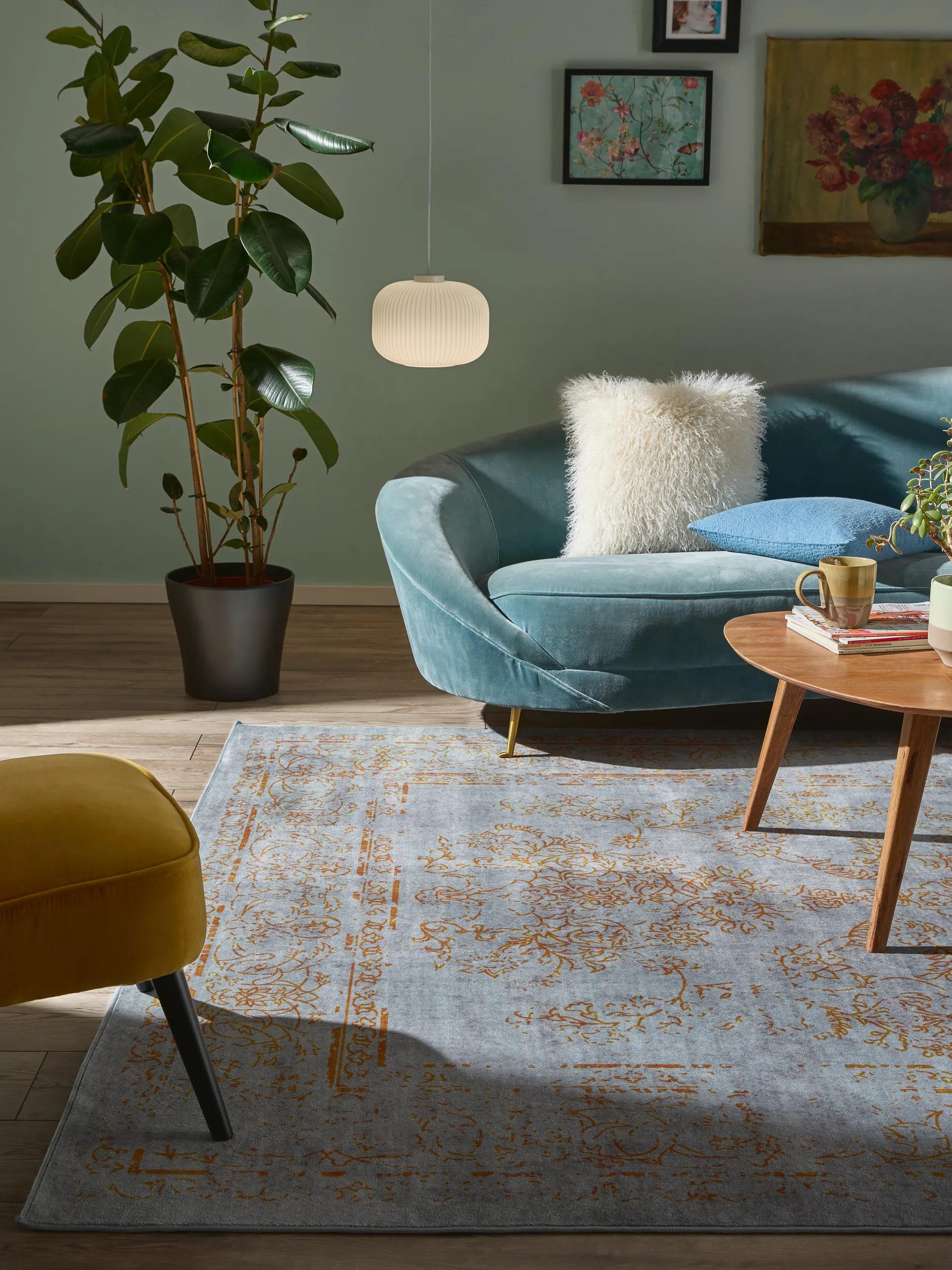 Tapis vintage oriental gris et orange lavable 120x170 cm