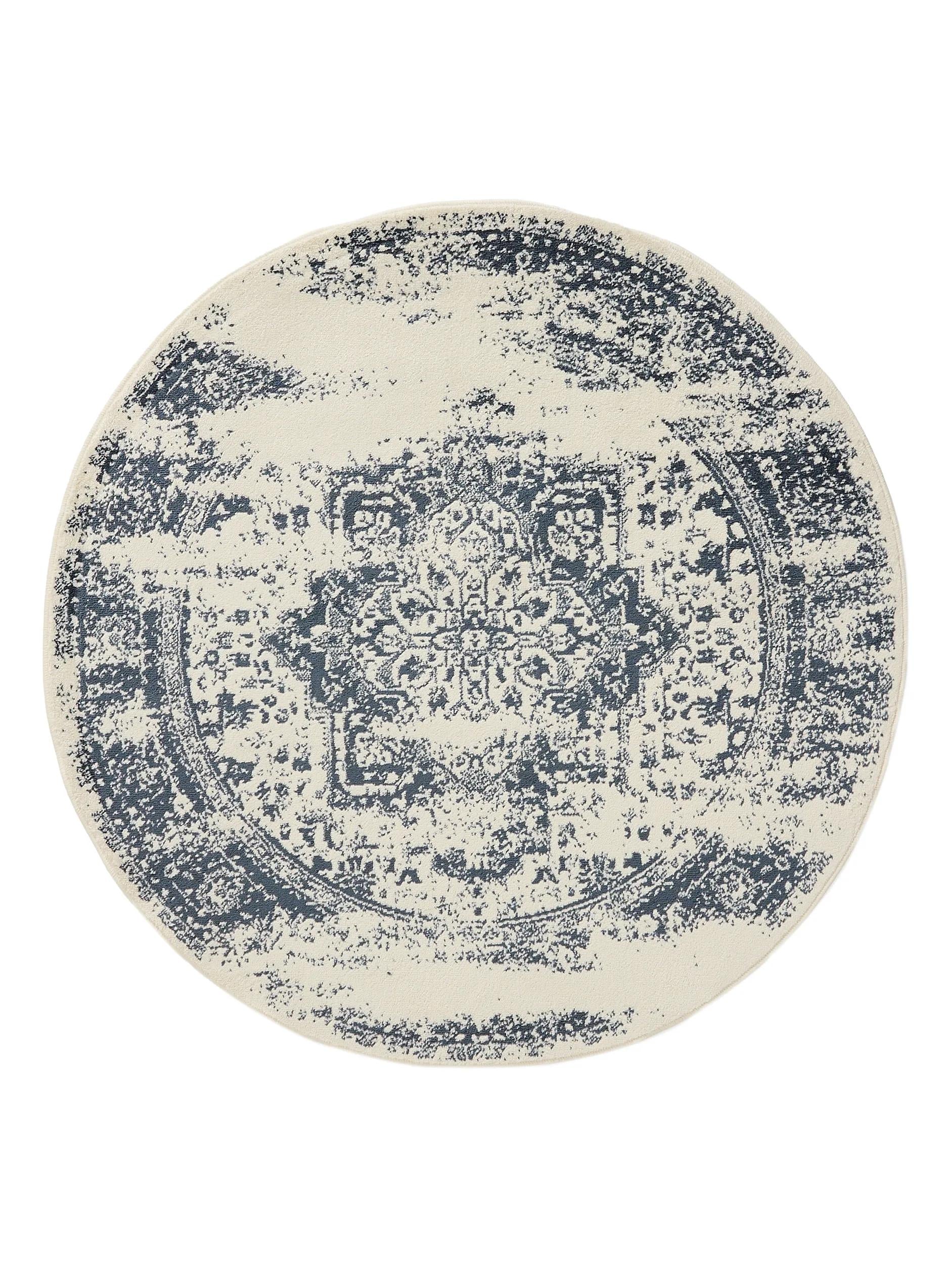 Tapis vintage oriental rond beige et bleu 120 cm de diamètre