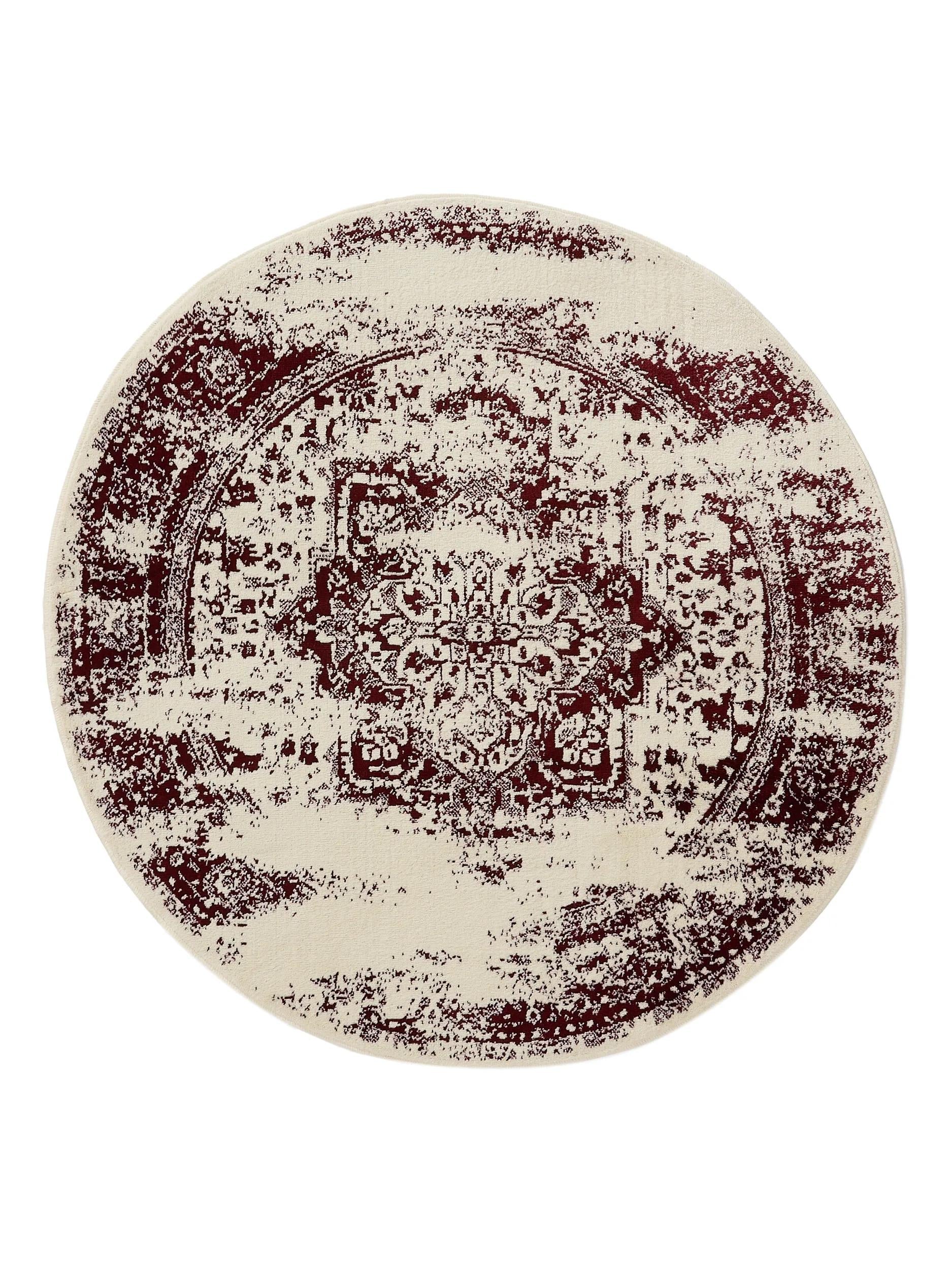 Tapis vintage oriental rond beige et bordeaux 160 cm de diamètre