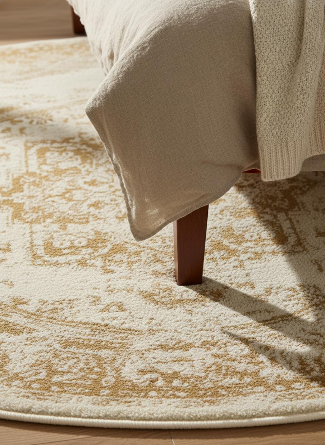 Tapis vintage oriental rond beige et camel 120 cm de diamètre