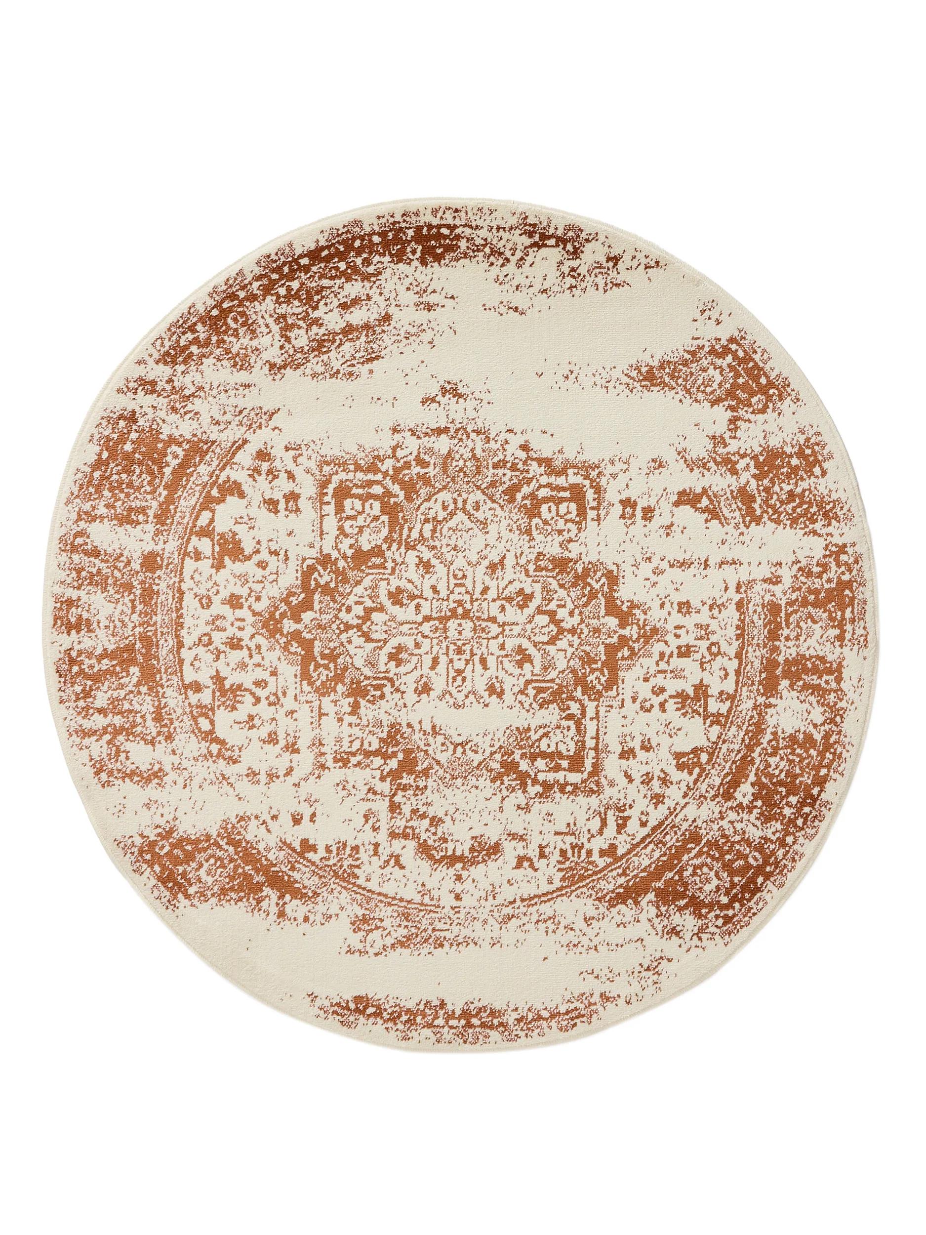 Tapis vintage oriental rond beige et terracotta 160 cm de diamètre