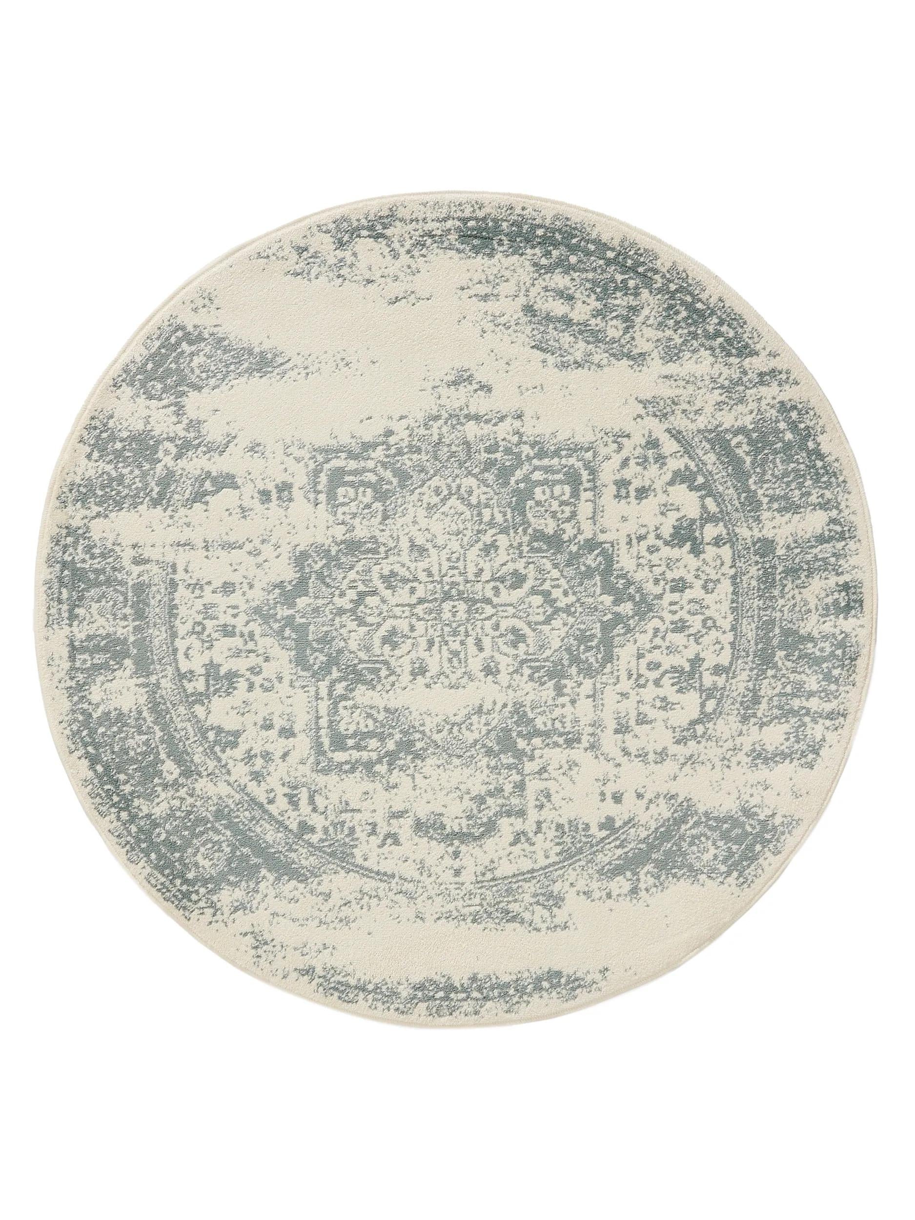Tapis vintage oriental rond beige et vert 160 cm de diamètre