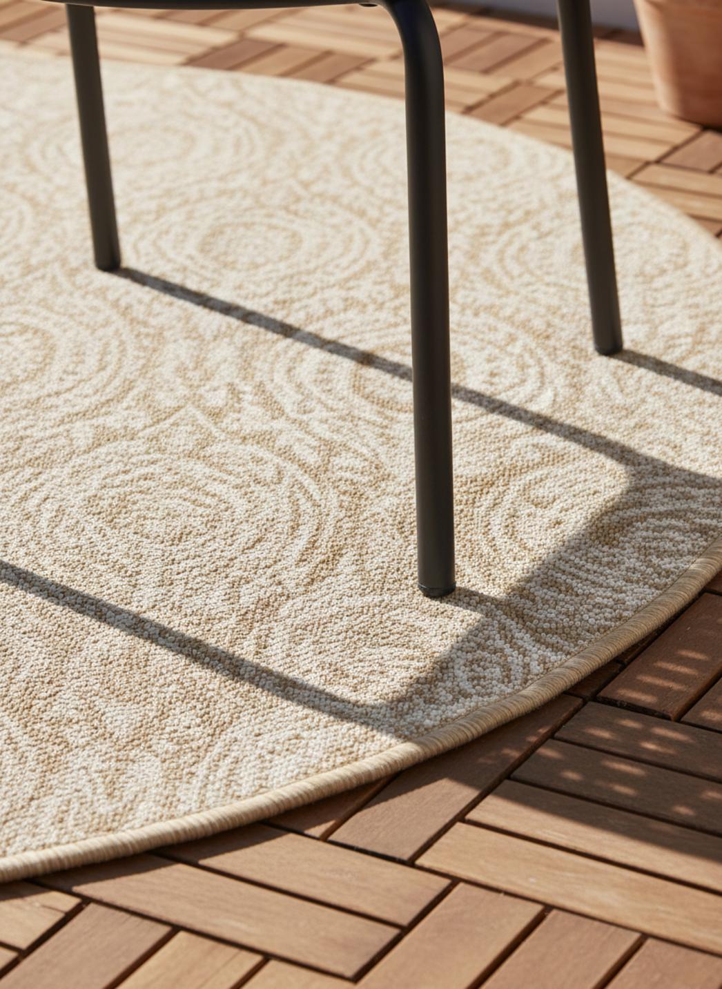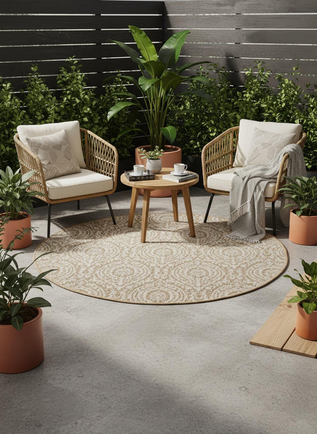 Tapis vintage oriental rond crème et beige d'intérieur et d'extérieur 120 cm de diamètre