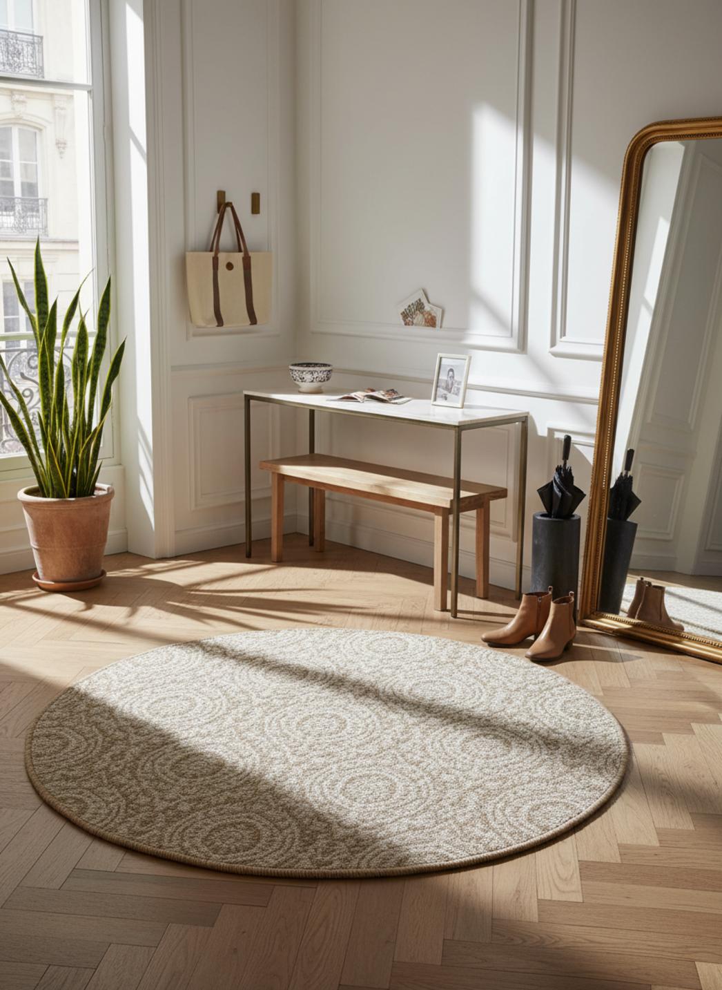 Pensé comme un écrin, ce modèle rond offre un effet cocon idéal pour un coin lecture ou un salon intimiste : il articule l'espace, arrondit les lignes du mobilier et invite à la conversation. Sa silhouette douce apaise la géométrie de la pièce, tandis que la surface patinée raconte les passages et les usages. Conçu pour s'adapter autant à une ambiance intérieure raffinée qu'à des extérieurs protégés, il transforme la lumière et module les contrastes selon l'heure du jour.