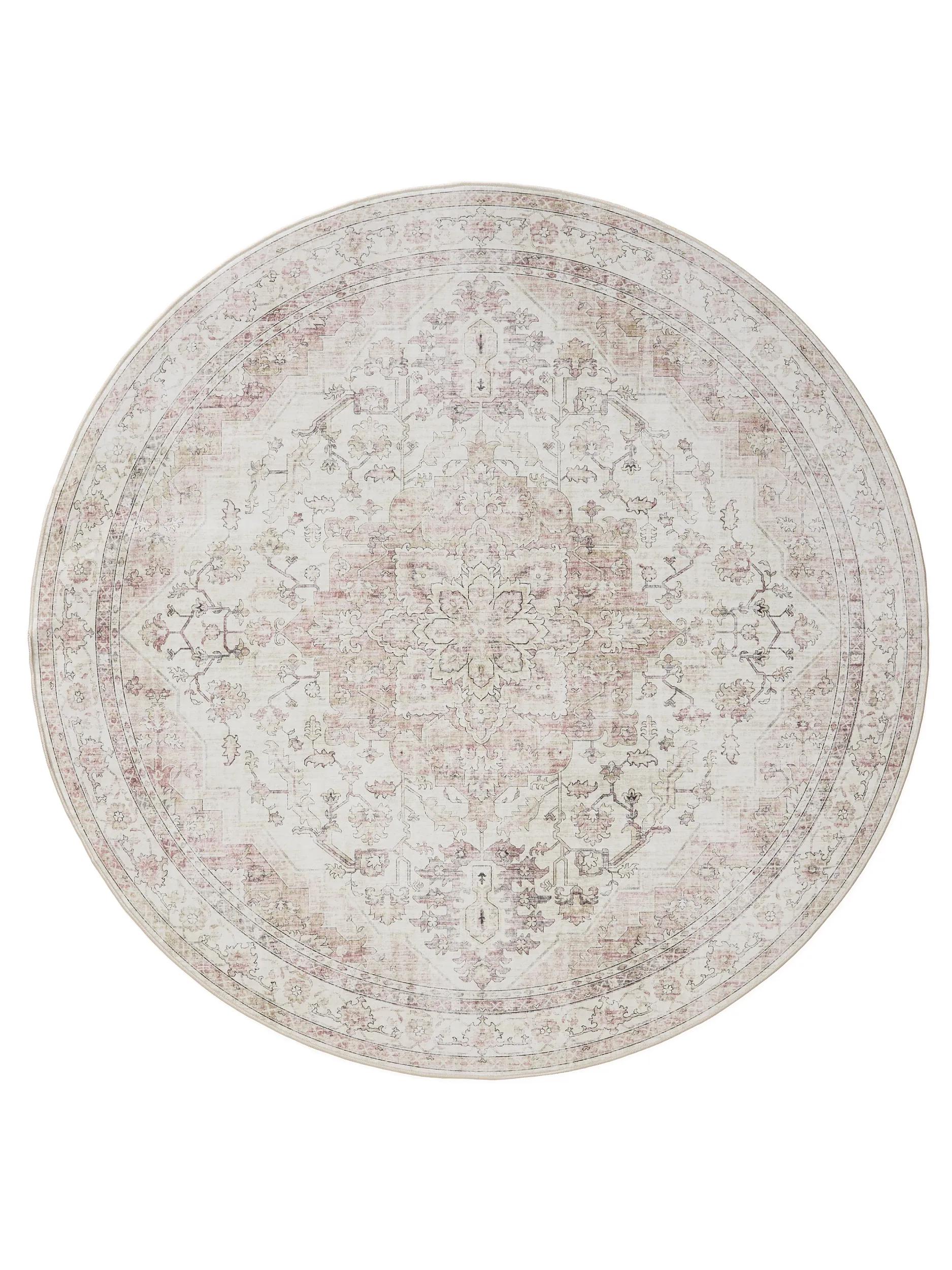 Tapis vintage rond beige et rose lavable 120 cm de diamètre